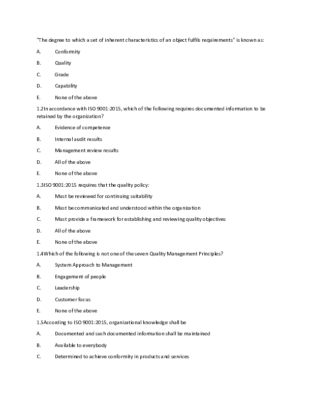 Iso 9001 2015 Multiple Choice Questions Pdf